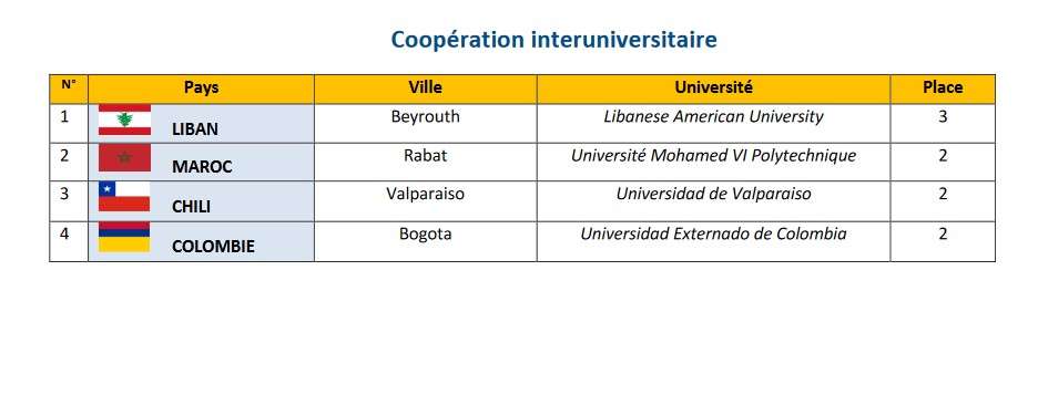 Universités partenaires pour les conventions inter-universitaires