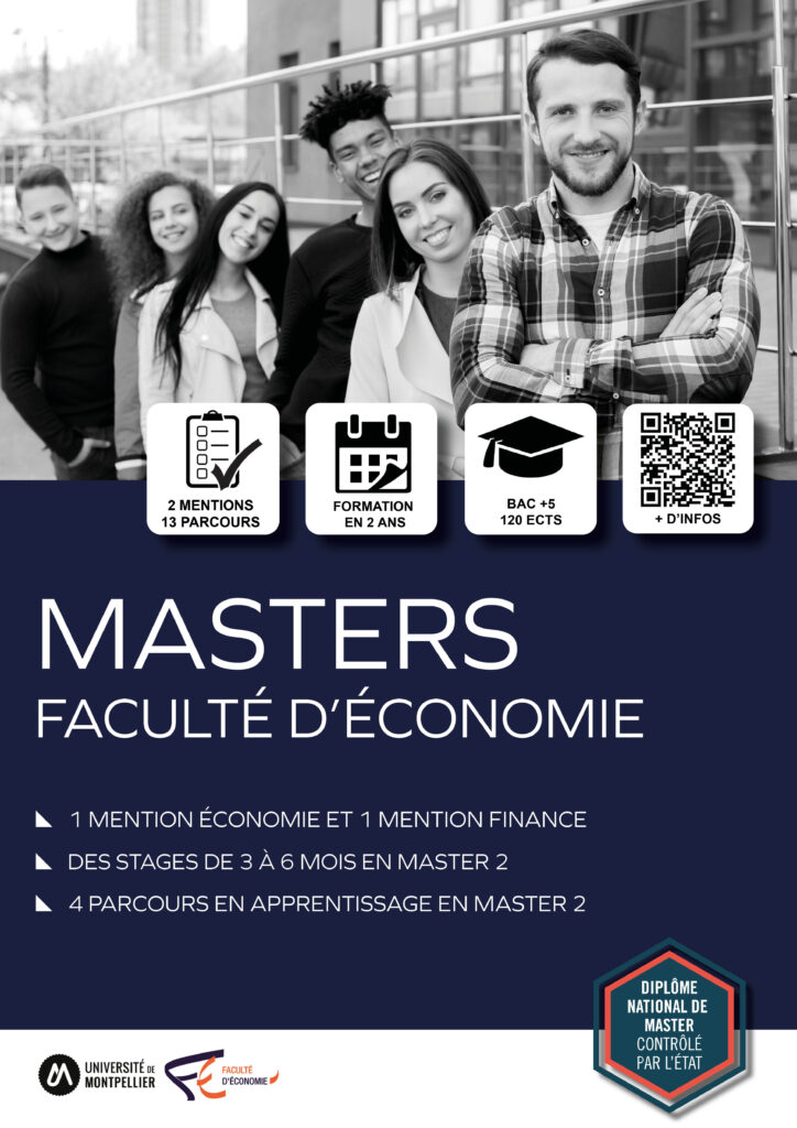 Les Masters de la Faculté d’Économie offrent une formation d’excellence en économie. Ils permettent de se spécialiser dans des secteurs professionnels variés tels que la finance, l’énergie, le numérique ou la santé, tout en préparant à une insertion professionnelle qualifiée ou à la poursuite en recherche.